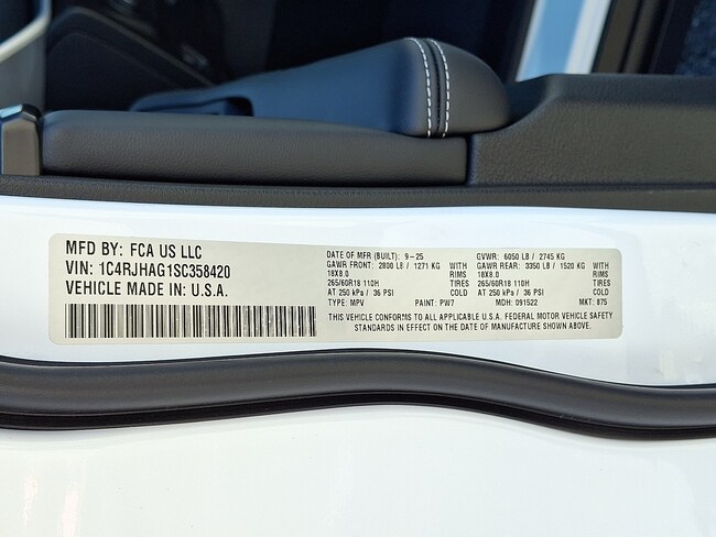 - VIN : 1C4RJHAG1SC358420