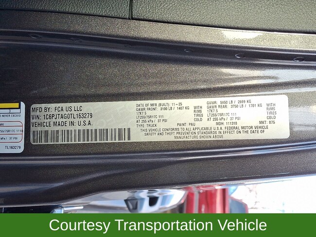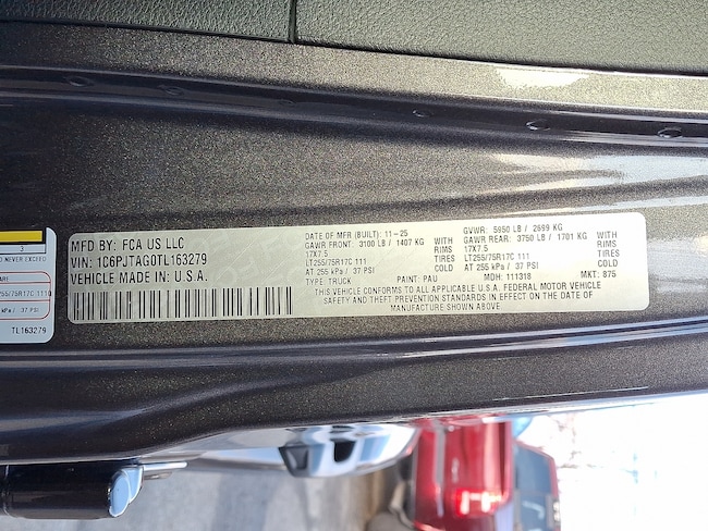 • VIN : 1C6PJTAG0TL163279
