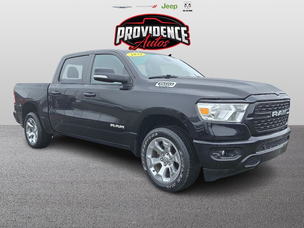 "Introducing the 2022 Ram 1500 Big Horn Crew Cab 4x4, the perfect blend of power, style, and versatility. Dressed in a striking Diamond Black Crystal Pearlcoat exterior, this truck commands attention on the road. The spacious Crew Cab configuration is designed for comfort, providing ample room for passengers and cargo alike, while the sleek black interior adds a touch of sophistication to your driving experience. Under the hood, you'll find a robust 3.6L V6 DOHC engine, delivering an impressive 305 horsepower. With variable valve control and a fuel-efficient regular unleaded configuration, this engine ensures an exhilarating ride whether you're navigating city streets or off-road adventures. The 5'7"" box offers numerous options for hauling and towing, making it a versatile choice for work or play. Equipped with four-wheel drive, the Ram 1500 Big Horn guarantees outstanding traction and stability in various conditions. Ideal for those who appreciate both performance and luxury, this truck represents the pinnacle of modern capability. Experience the perfect balance of strength and practicality-discover the 2022 Ram 1500 Big Horn today!"
